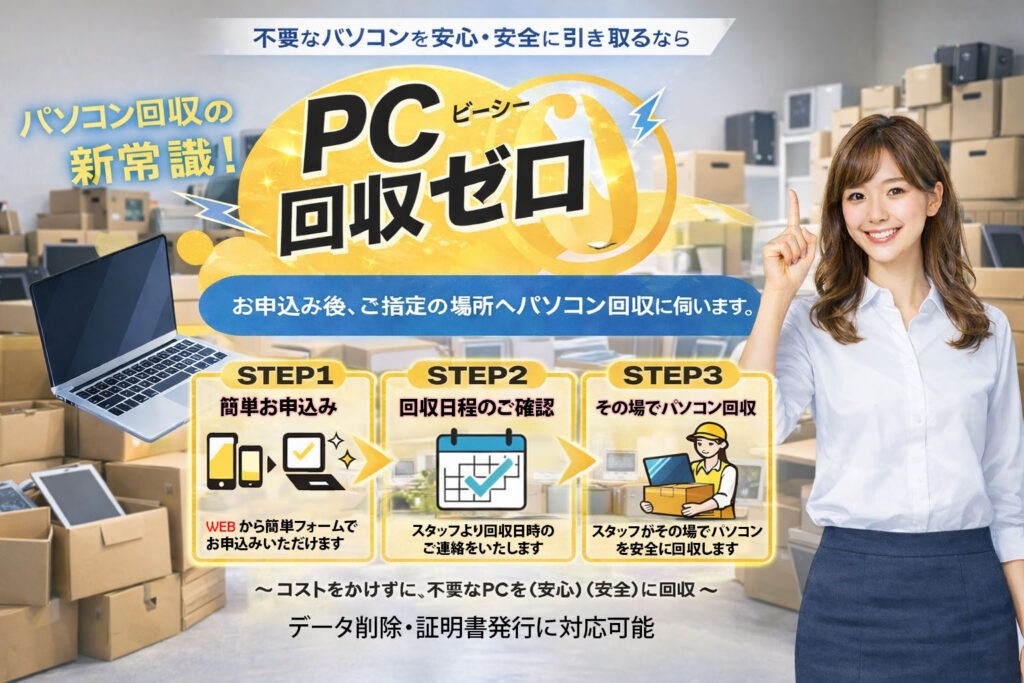 | Q – 「4台以上」とは、どの機器が対象ですか? A – 以下の機器が対象となります。 ・ノートパソコン (MacBook/Surface/Chromebook 含む、HDDなしでもOK) ・デスクトップパソコン (デスクトップPC/自作パソコン 含む、HDDなしでもOK) ・サーバー (HDDなしでもOK) ※上記の機器を合計4台以上回収する場合、関東エリアは出張費無料となります。 |